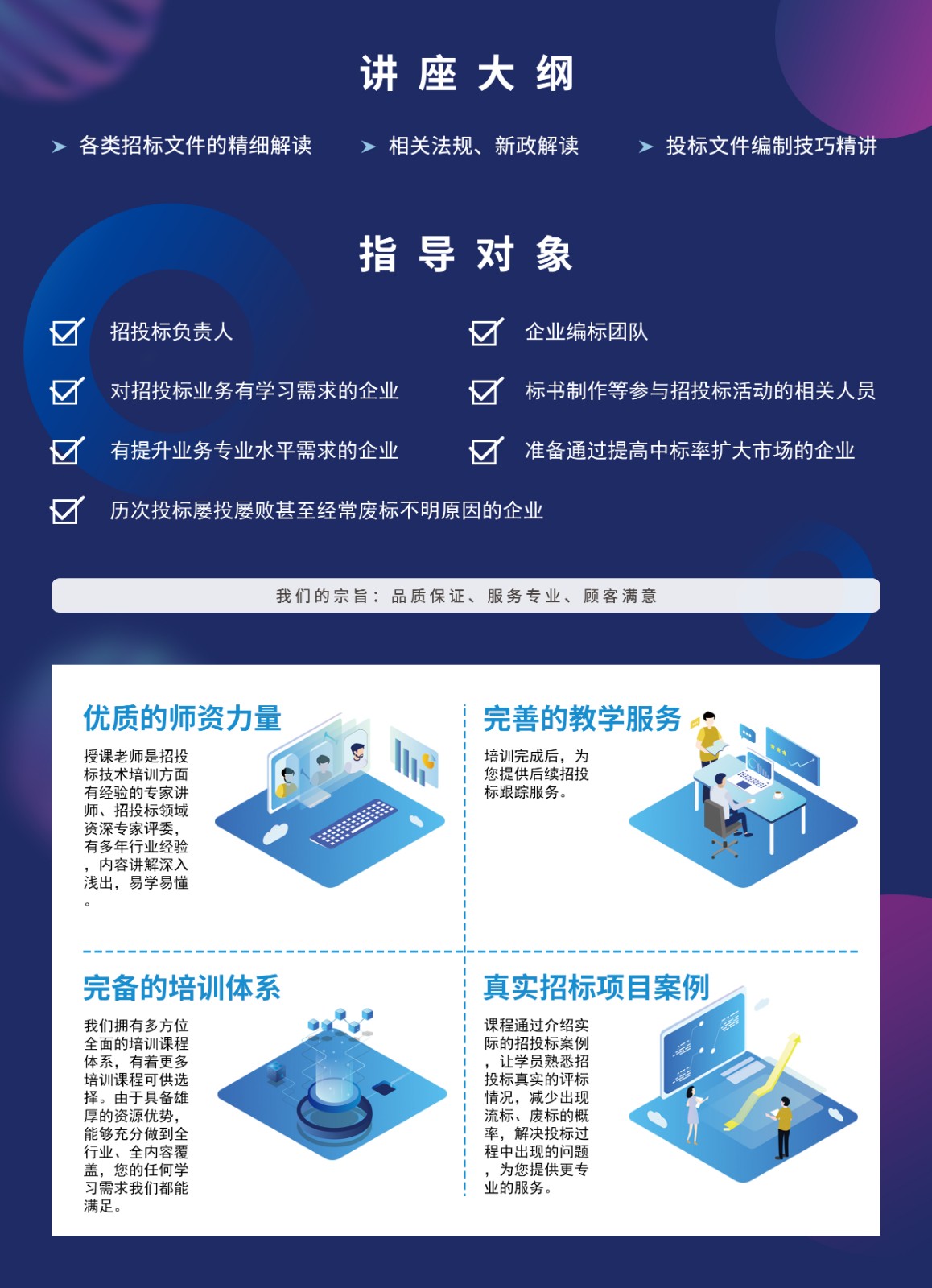對(duì)招投標(biāo)業(yè)務(wù)有學(xué)習(xí)需求的企業(yè),包括企業(yè)編標(biāo)團(tuán)隊(duì)、招投標(biāo)負(fù)責(zé)人、標(biāo)書制作等參與招投標(biāo)活動(dòng)的相關(guān)人員,特別是有提升業(yè)務(wù)專業(yè)水平需求、準(zhǔn)備通過提高中標(biāo)率擴(kuò)大市場(chǎng)、歷次投標(biāo)屢投屢敗甚至經(jīng)常廢標(biāo)不明原因的企業(yè)。